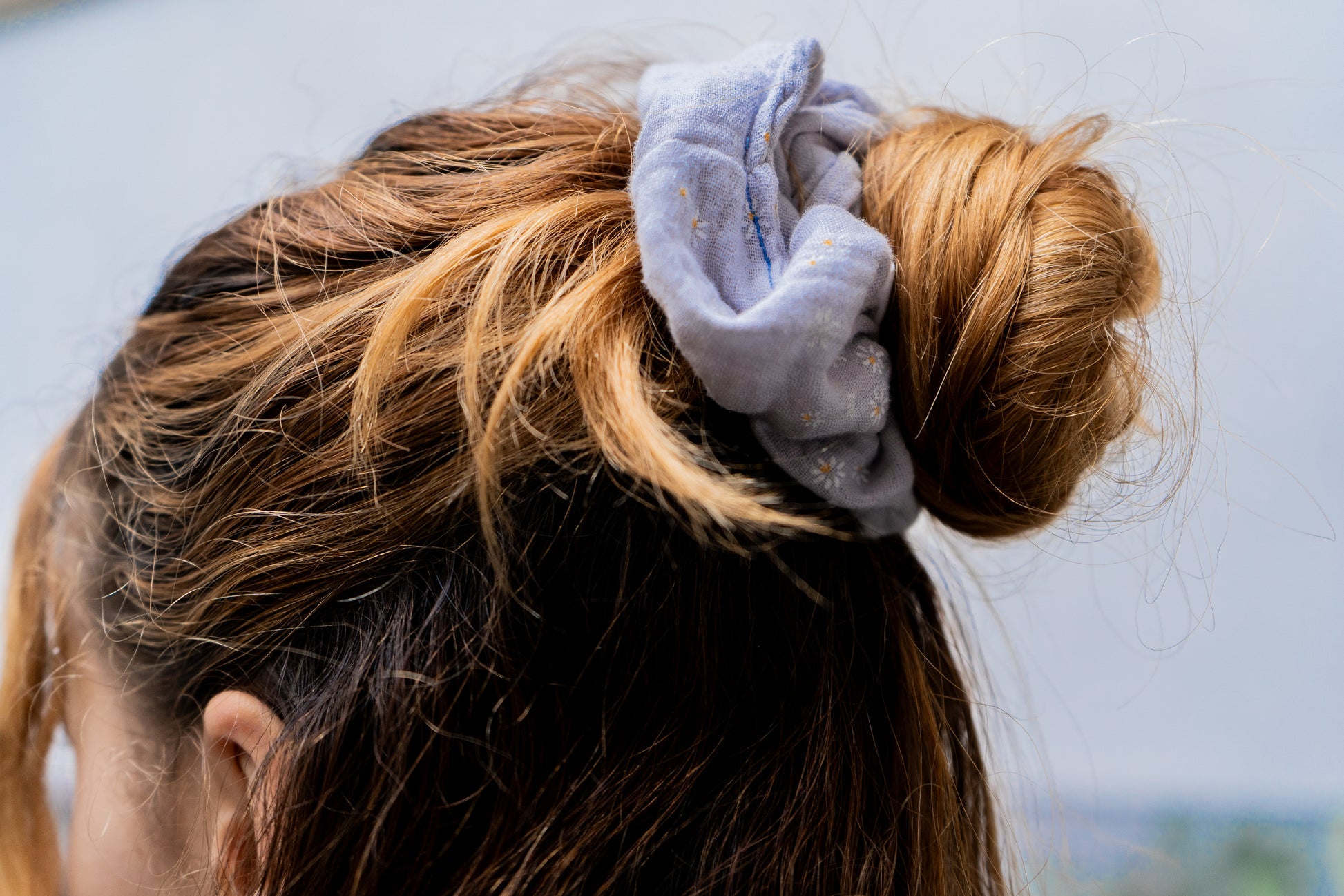 Scrunchie Pilea - Blaue Blümchen