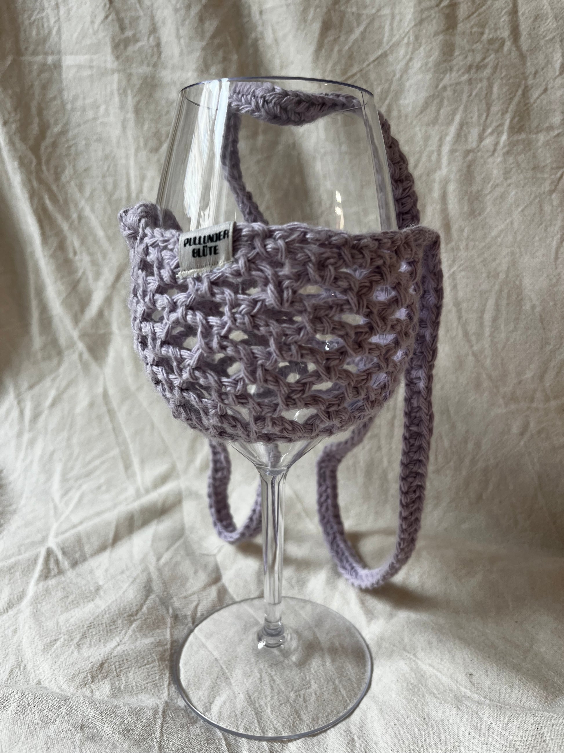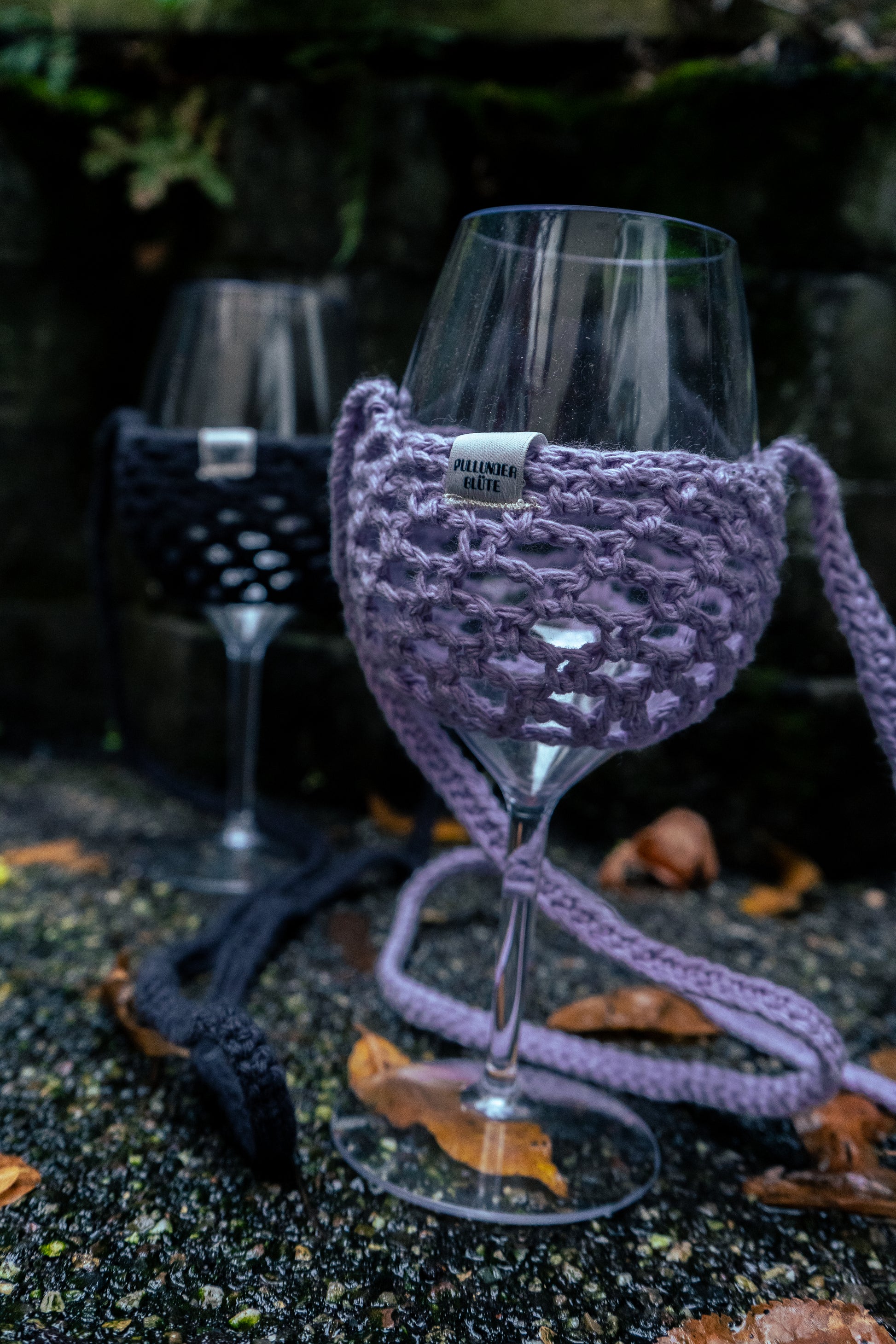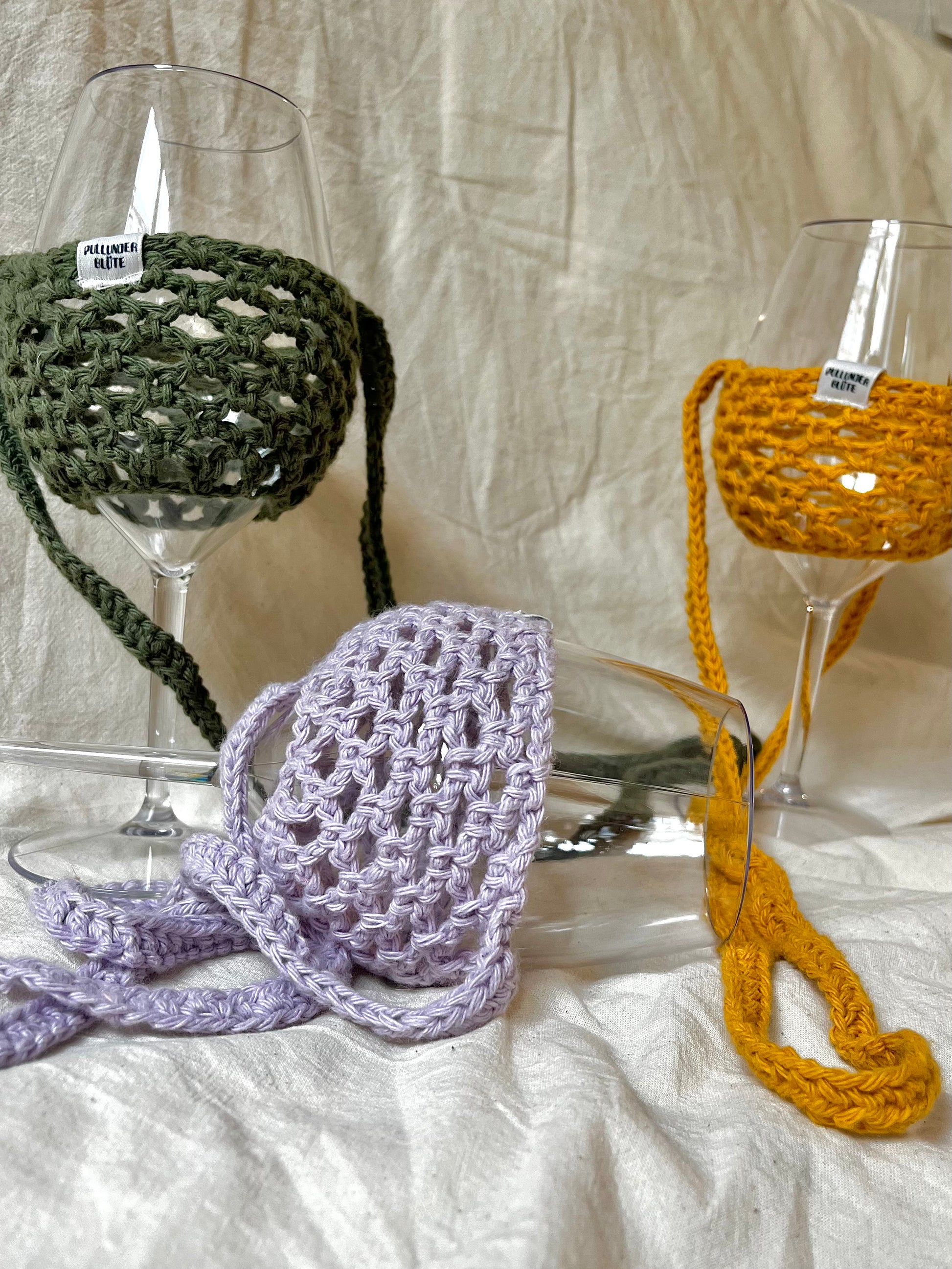 Der Weinglashalter ist das perfekte Accesoire für deinen nächsten Kneipenabend, Weinwanderung oder Festivalbesuch. Gehäkelt aus robuster Baumwolle kannst du dir sicher sein, dass du dein Weinglas nie wieder verlegst.