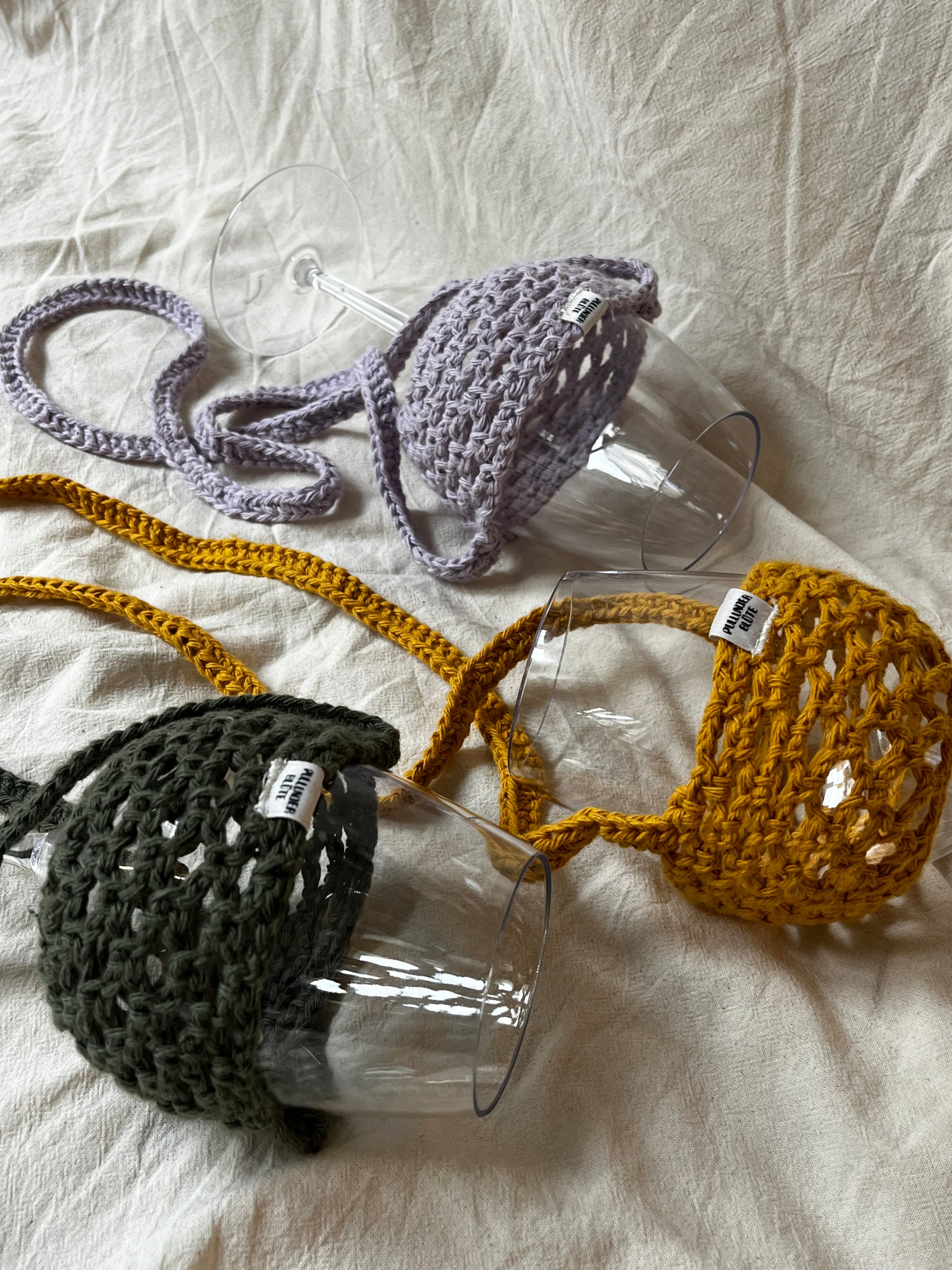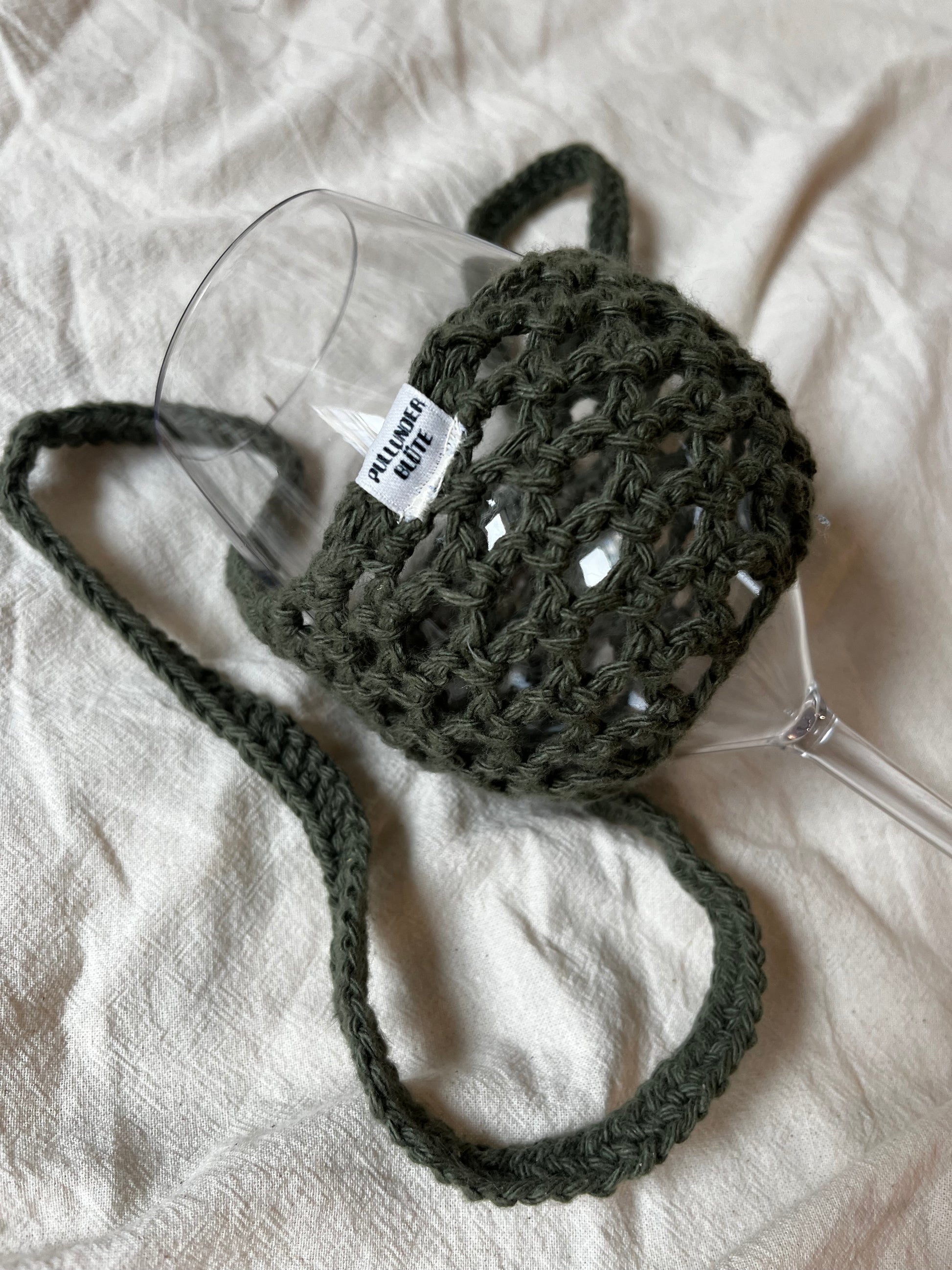 Der Weinglashalter ist das perfekte Accesoire für deinen nächsten Kneipenabend, Weinwanderung oder Festivalbesuch. Gehäkelt aus robuster Baumwolle kannst du dir sicher sein, dass du dein Weinglas nie wieder verlegst.